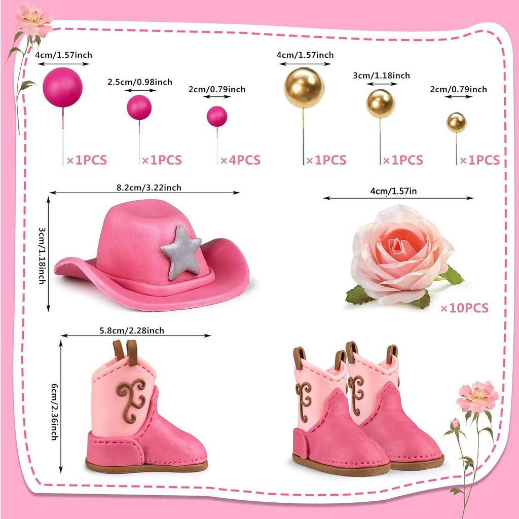 Różowy kowbojski kapelusz, dziewczęce dekoracje na tort urodzinowy, różowy kowbojski kapelusz, kowbojskie buty, dekoracje na tort, babyshower, toppery na tort