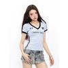Y2k Harajuku School T-shirty damskie amerykańskie retro vintage streetwear patchworkowe paski litery nadruk wąskie koszulki topy