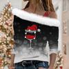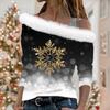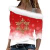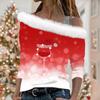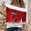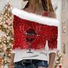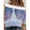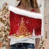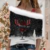 Damski top z długim rękawem z ukośnym kołnierzem Modny damski luźny sweter z nadrukiem świątecznym z odkrytymi ramionami