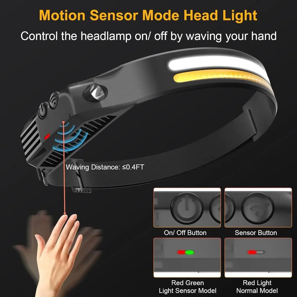 New Induction COB LED Headlamp USB Rechargeable Use 18650 Battery Headliaght Torch 8 Lighting Modes Outdoor Working Lantern