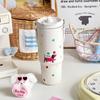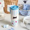 Pamiętnik dla kota i psa, kubek ze stali nierdzewnej ze słomką - izolowana próżniowo butelka na wodę, wielokrotnego użytku kubek ze słomką