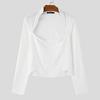 INCERUN Men Long Sleeve Cutout Slim Tops Casual Bodycon Short T-shirts