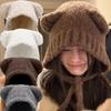 Winter Plush Beanies Cute Bear Ear Wool Hat Warm Lace-up Women Protection Korea Ear Bonnets Kni M4R3