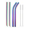 4 szt. Kolorowe 12 mm wielokrotnego użytku metalowe słomki Boba z 2 szczoteczkami 304 ze stali nierdzewnej zestaw słomek do picia Bar wygięta słomka do Bubble Tea