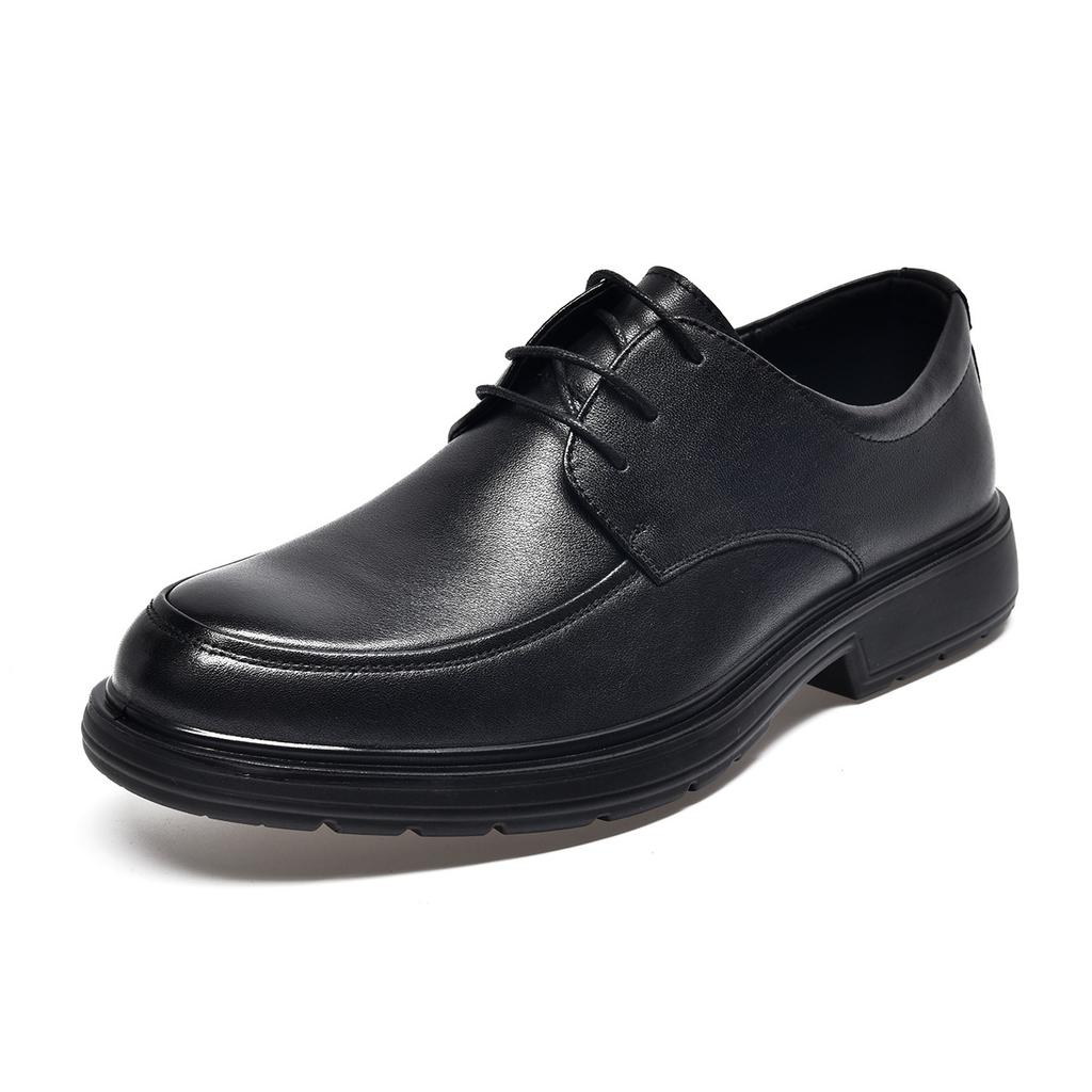 Men'S Leather Shoes Business Dress Shoes First Layer Cowhide Lace-Up Flats Black Professional Work Shoes