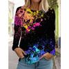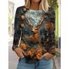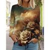 Świąteczny damski okrągły dekolt długi rękaw róża retro nadruk długi rękaw nadruk 3d świąteczny pulower długi rękaw wiosna i jesień