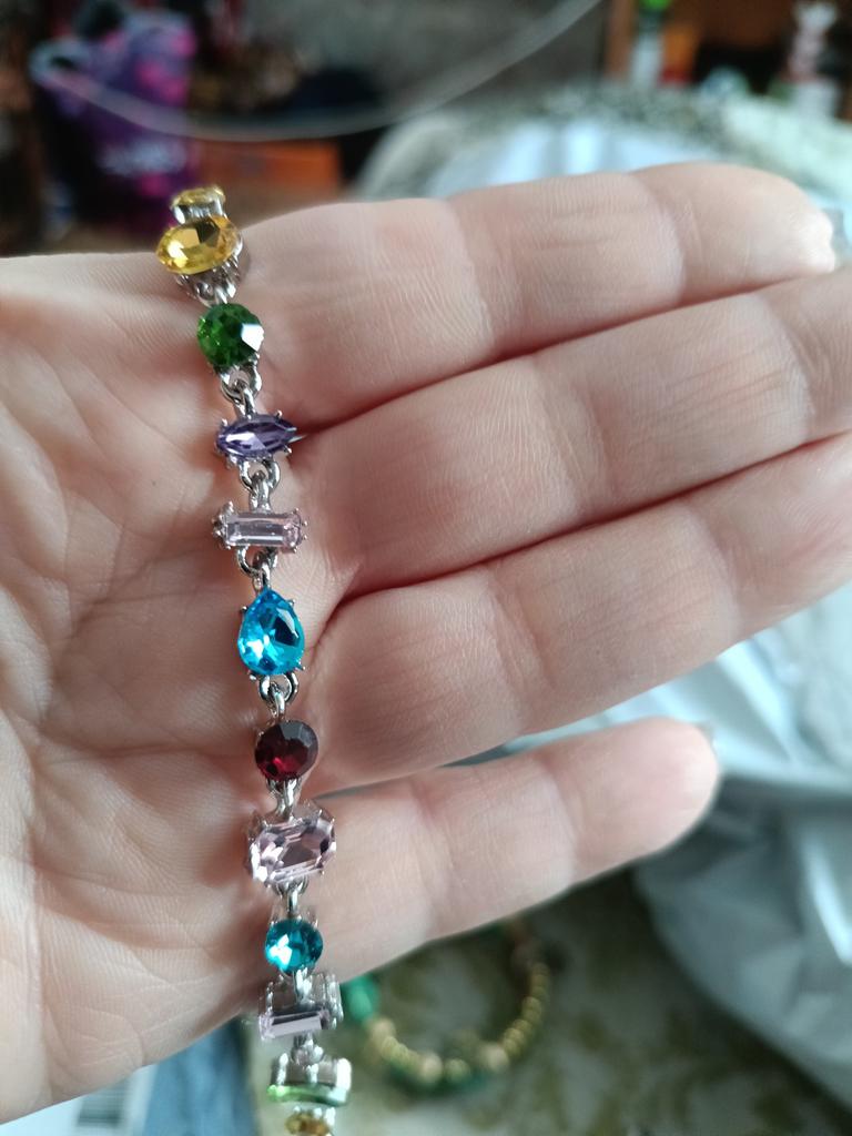 Znakomity projekt: Wykonana z wysokiej jakości stopu, ta bransoletka symbolizuje nadzieję, wiarę i miłość.. Ozdobiony kolorowymi cyrkoniami sześciennymi w różnych kształtach, emanuje elegancją i urokiem bez wysiłku.