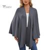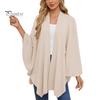 Bluzka z peleryną w jednolitym kolorze, rękawy typu nietoperz, płaszcz szalowy, średniej długości, krzyżowy wzór, bluzka w stylu peleryny