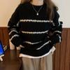 Retro Round Neck Loose Autumn Pullovers Sweaters Women Fashion Long Sleeve Striped Knitted Sweater Ladies Elegant Slim Jumpers Winter Clothing 25534