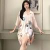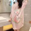 Koszula z krótkim rękawem i nadrukiem kota, damska, seksowna, średniej długości, odzież domowa