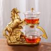Kreatywny czajnik dla konia w pełni automatyczny szklany czajnik z zaparzaczem magnetycznym do odprowadzania wody odporny na ciepło zestaw do picia herbaty Kungfu