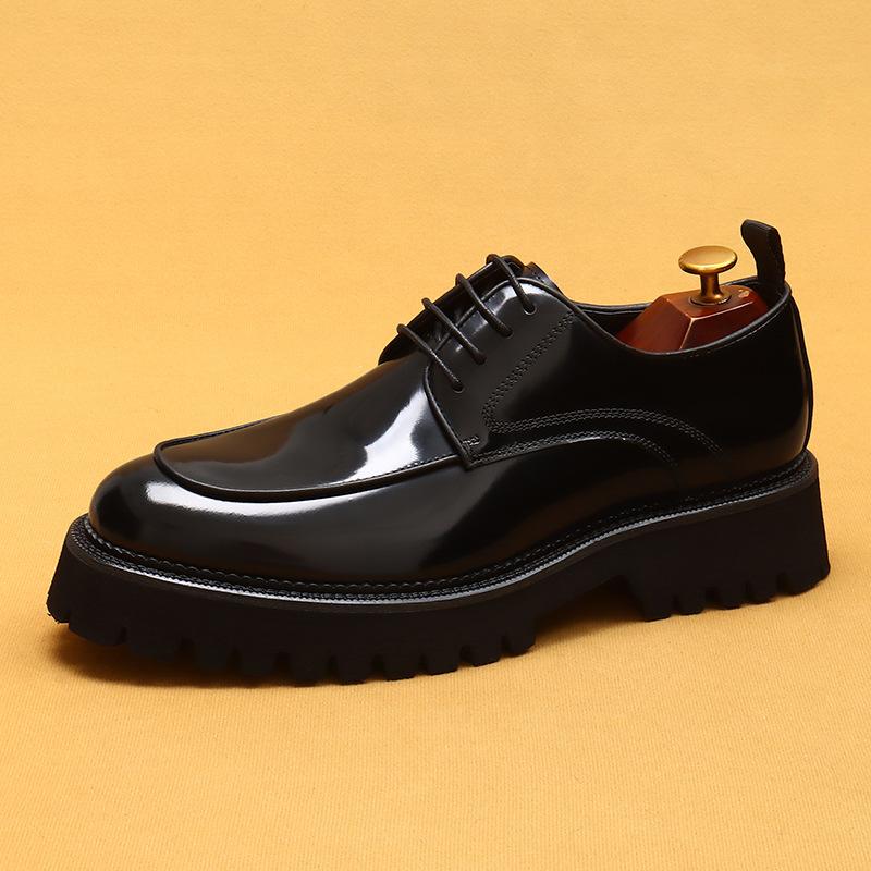 Buty skórzane na platformie męskie okrągłe z błyszczącą skórą buty biznesowe casualowe oryginalne skórzane buty brytyjskie