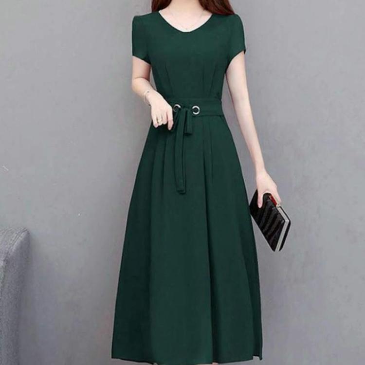Temperamen Sukienki Modowe Lato Nowe Kobiety Jednolita O-Neck Zamek Bandaż Styl Hepburn Krótki Rękaw Limi Długość Midi Sukienka A-line
