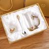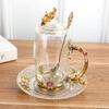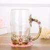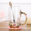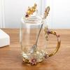 Emaliowany Kolorowy Kubek do Herbaty z Kwiatami Domowy Kubek do Wody Salonowy Kubek do Kawy Kryształowy Szklany Kubek do Herbaty z Pokrywką i Łyżeczką Naczynie do Napojów z Uchwytem
