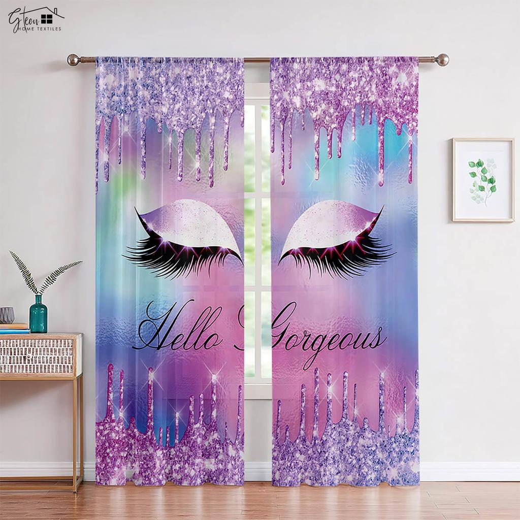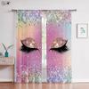 2 Pack Colorful Shiny Eyelashes Cartoon Print Curtain Rod Pocket Bedroom Living Room Kitchen Kids Room Decorative Curtains