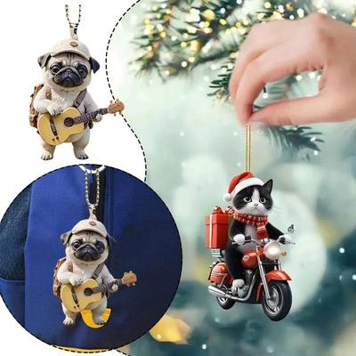 Dekoracja świąteczna Szczeniak jeżdżący na motocyklu akrylowy wisiorek choinka ozdoba wisząca na święta dom samochód