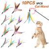 11 sztuk wymiennych zabawek dla kotów z piórami, wymienna głowa z piórami, wysuwany patyk dla kota, produkty dla kotów