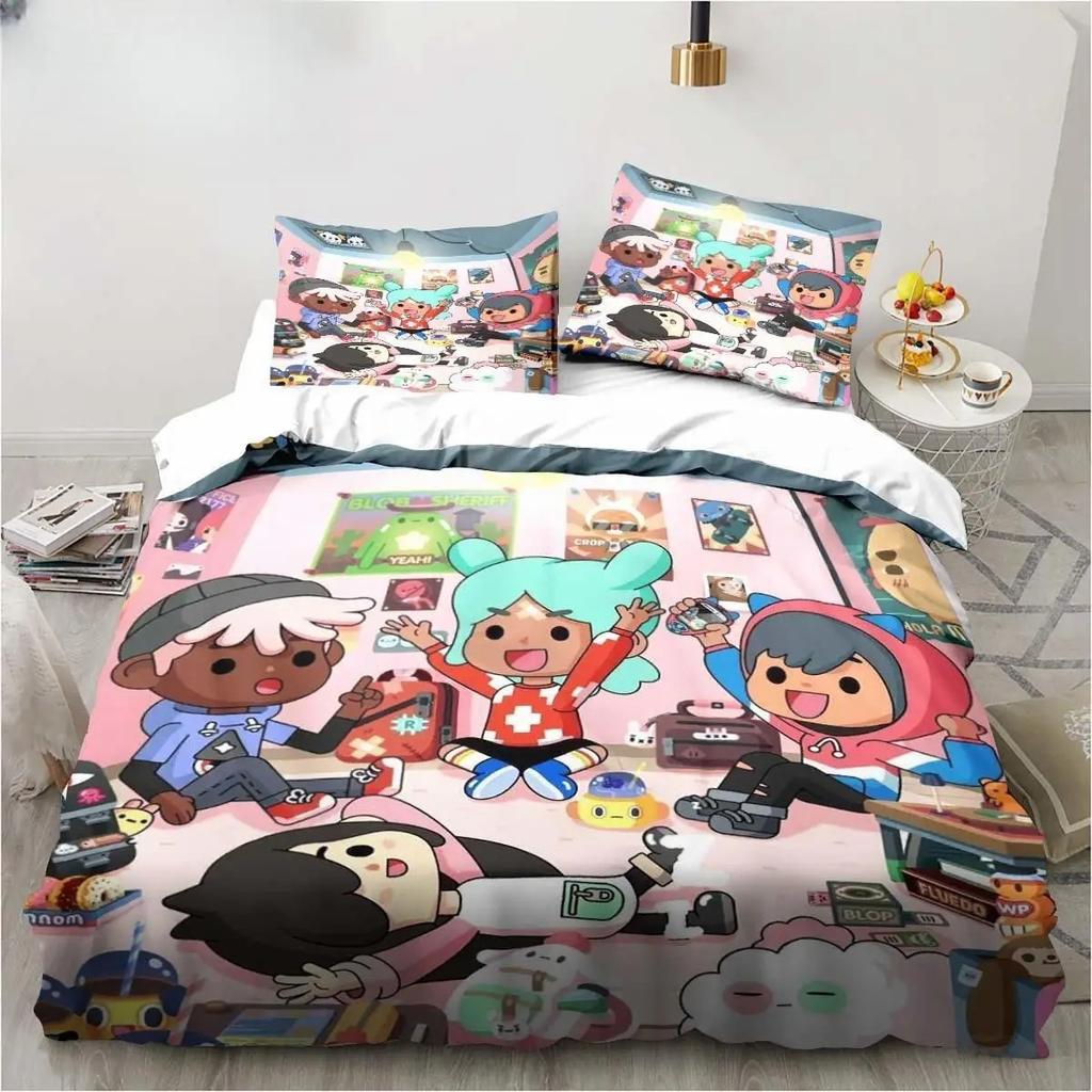 Nowy 3D Kreskówkowy Zestaw Pościeli Toca Life World Poszwa na Kołdrę Zestaw do Łóżka Poszwa na Kołdrę Poszewka Koc King Queen Size Chłopcy Dorośli