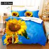 Zestaw pościeli ze słonecznikami Zestaw poszwy na kołdrę Pościel 3D Druk cyfrowy Pościel Lniana Rozmiar Queen Zestaw pościeli Modny design