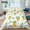 Zestaw Poszwy na Kołdrę Ananas Rozmiar King Żółty Geometryczny Zestaw Pościeli Ananas Motyw Nadmorski Plażowy Poszwa na Kołdrę z Nadrukiem Owoców