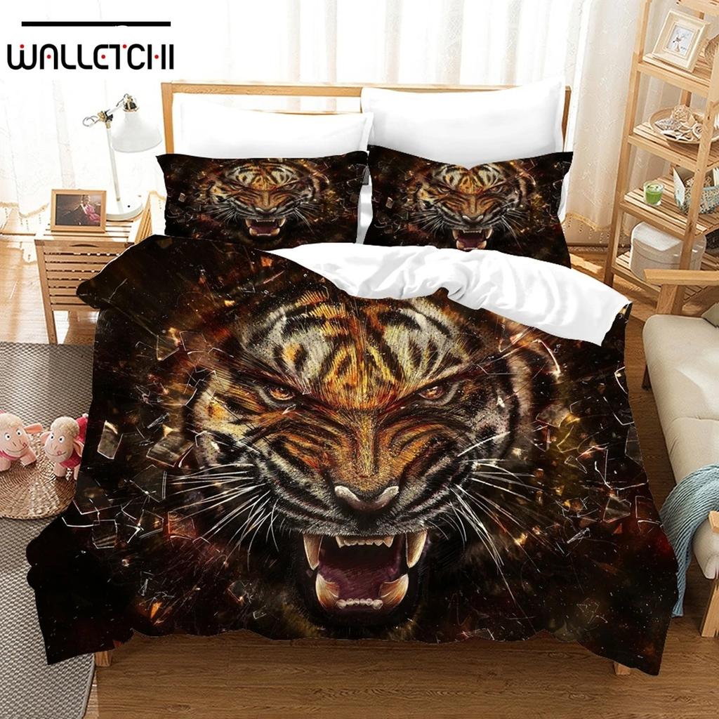 Drukowana w 3D Pościel Zwierzęca Tygrys Lew Dzikie Zwierzę Zestaw Kołdry Osobowość