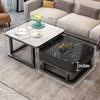 Stolik kawowy 2 w 1 ze szkła hartowanego z solidną drewnianą szufladą i centralnym stolikiem do przechowywania w salonie