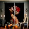 Kreatywna czaszka kwiat 3D drukowana zasłona, sypialnia, salon, restauracja, dekoracja imprezy halloweenowej, 2 sztuki