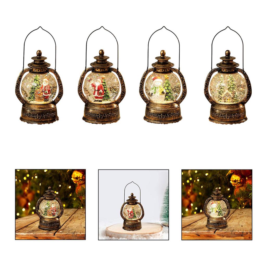 Oświetlona Świąteczna Kula Śnieżna Latarnia Pudełko Muzyczne z Wirującym Brokatem Lampka Nocna na Święta do Sypialni Salonu Półki Imprezy