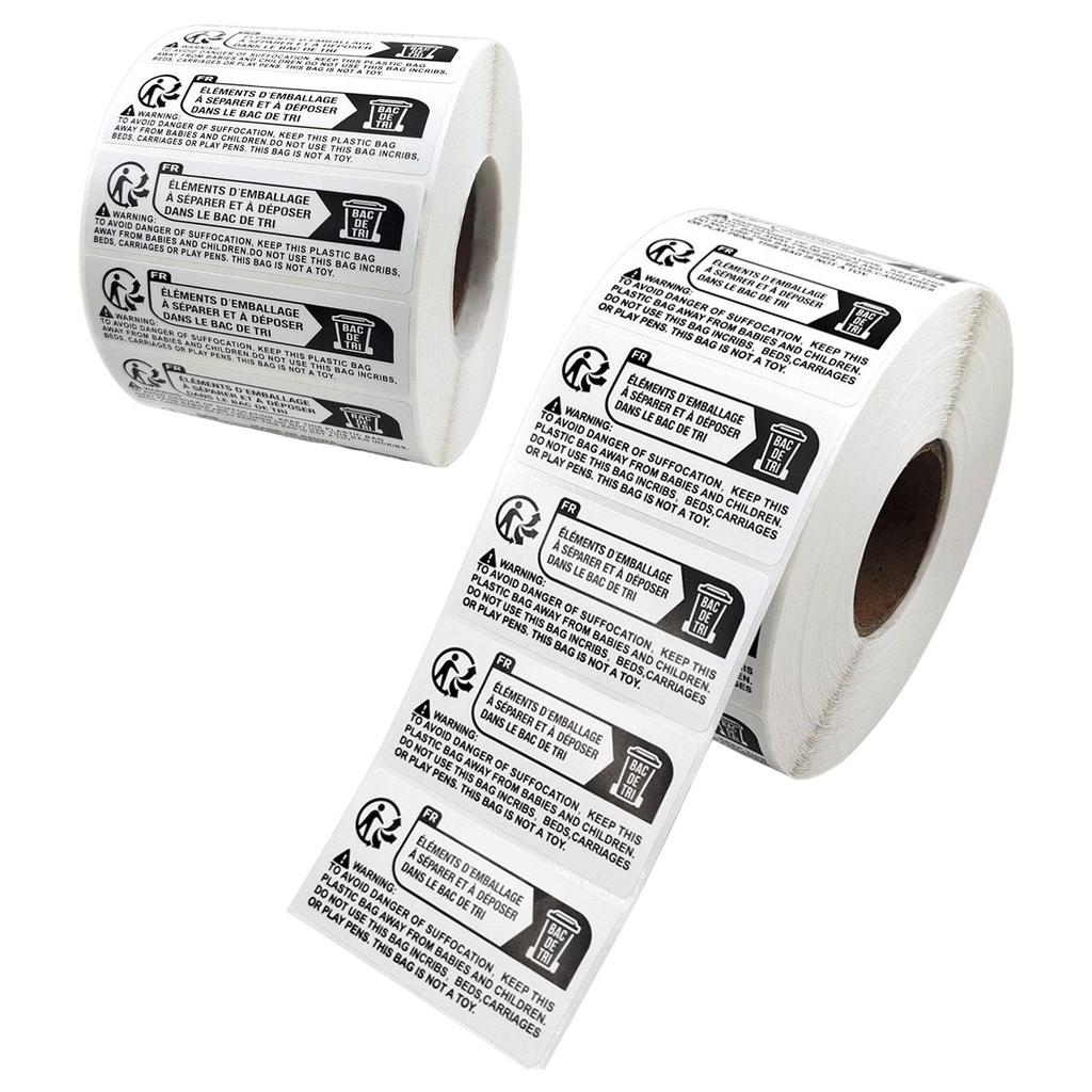 Ostrzeżenia przed uduszeniem 2000 etykiet prostokątnych Trzymać z dala od dzieci Ryzyko uduszenia Ostrzeżenie Samoprzylepne naklejki