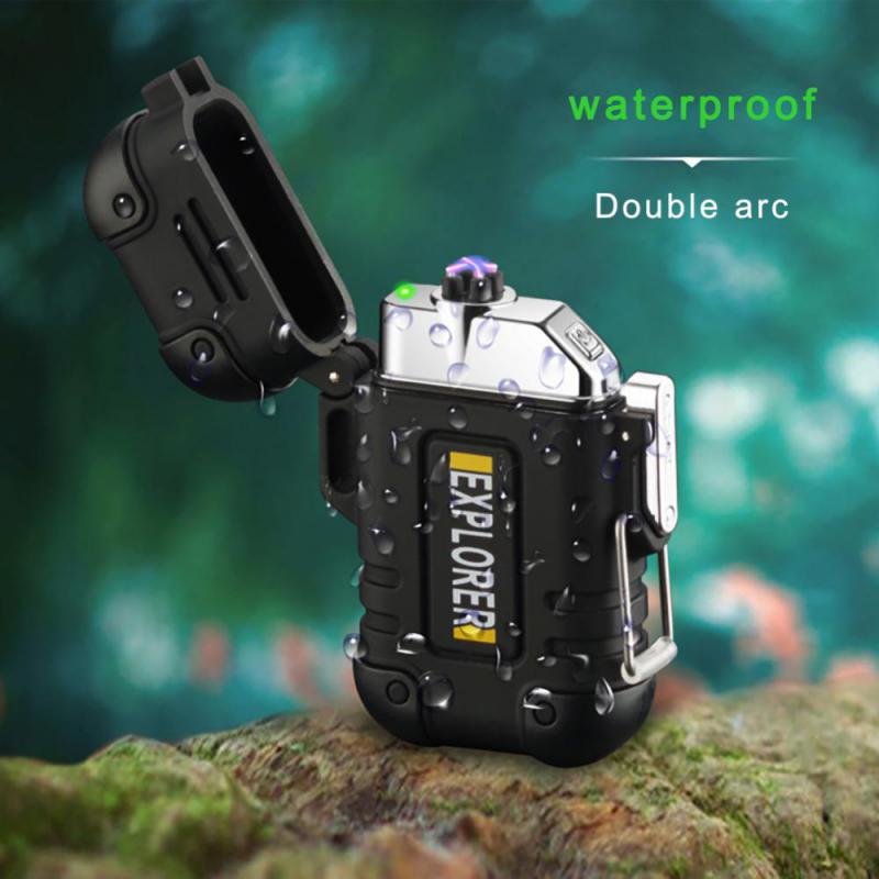 Waterproof Lighter With Lanyard USB Push-up Button Lighter Double-sided Point USB Rechargeable Lighter Electronic Arc Lighter