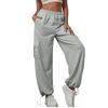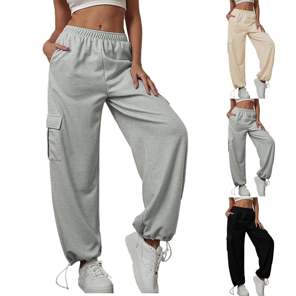Damskie elastyczne spodnie z wysokim stanem, swobodne, aktywne, szerokie nogawki, długie spodnie z kieszeniami