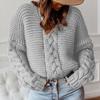 Jesienny i zimowy jednolity kolor sweter z dekoltem w serek luźny sweter swobodny dzianinowy sweter dla kobiet