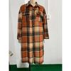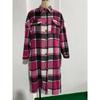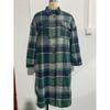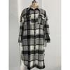 Damski jesienno-zimowy płaszcz trenczowy wełniany w kratę z długim rozcięciem plus size