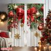 2 szt. Zestaw Zasłony z nadrukiem choinki i bombki - Kieszeń na karnisz, Poliester, Idealne do salonu, kuchni, sypialni i D