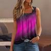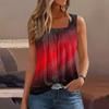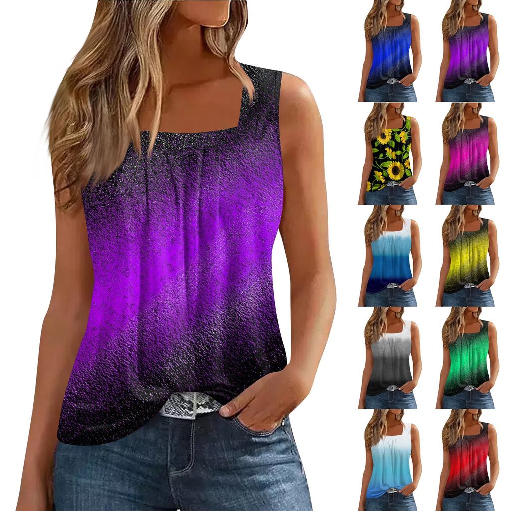 Damski letni, swobodny, plisowany, kwadratowy dekolt, bezrękawnik, nadrukowany T-shirt