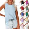 Women's Fashion Solid Color Round Neck Loose Sleeveless Pullover Vest Top