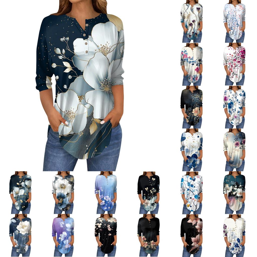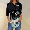 Damska Moda Luźny Kołnierzyk na Guziki Nadruk Rękaw 3/43/4 T-Shirt Top Pulower
