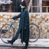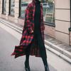Nowa koszula w kratę z długim rękawem dla kobiet, styl koreański, średniej długości, luźna, za kolano, koszula w stylu casual z rozcięciem