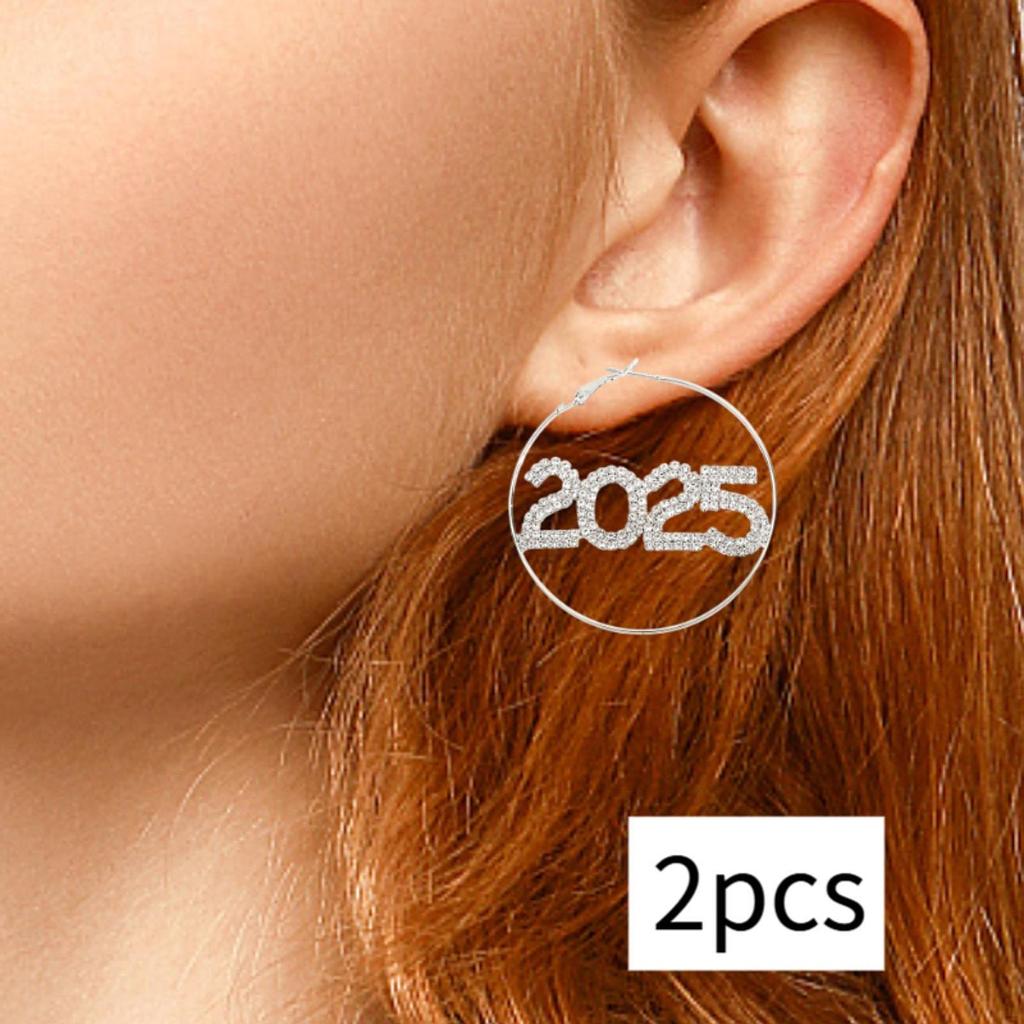 - 【Elegancki Bohemiczny Design】: Te oszałamiające kolczyki koła mają unikalny wzór z numerem 2025, ozdobiony błyszczącymi cyrkoniami, idealne do dodania odrobiny glamour Twoim noworocznym uroczystościom.