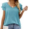 Women's Top V-neck Double Layered Lotus Leaf Short Sleeved Women's T-shirt