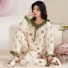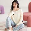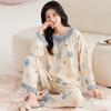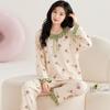 Niebieski Kwiat Piżama Zestaw Kobiety Piżamy Długie Rękawy Długie Spodnie Jesień Zima Słodkie Piżamy Przytulne Piżamy Miękkie Piżamy Dziewczęce Kawaii Piżamy