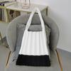 Torba na zakupy Plisowana Konstrukcja Składana Kontrastowy Kolor Wełniana Dzianina Torba na Ramię Do Ręki Organizer Kobiety Patchwork