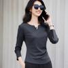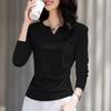 V-neck Long Sleeved T-shirt for Women In Autumn with Pleats and A Waist Cinching Top Exuding A Stylish and Versatile Inner Layer
