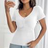 Damski luźny casualowy top w jednolitym kolorze, dopasowany, z koronkową wstawką, z dekoltem w serek i krótkim rękawem