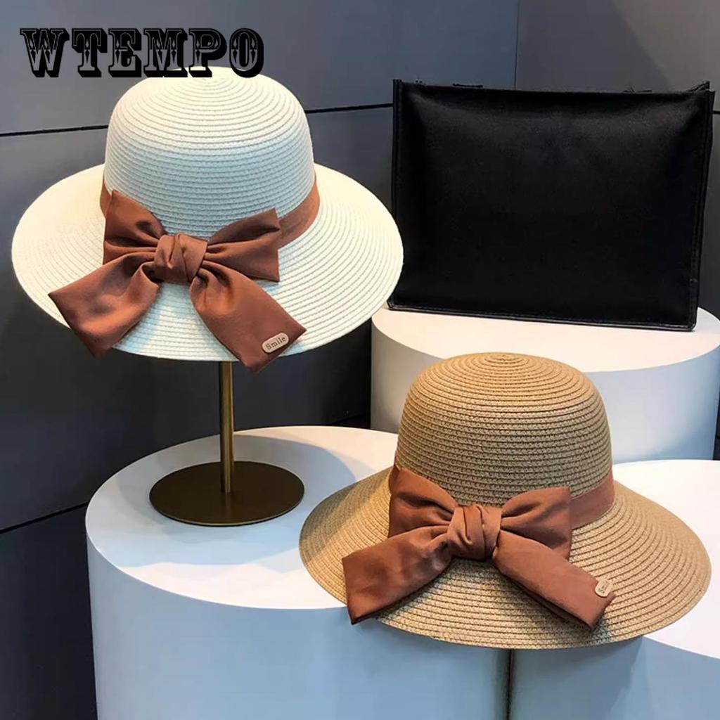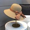 Women's Wide-Brimmed Straw Sun Hat, Summer Beach Hat with Bow, Breathable Foldable, Vacation Accessory