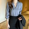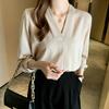 Women Fashion Blouses Shirts Long Sleeve V-Neck Office Lady White Chiffon Blouse Shirt Women Tops J754