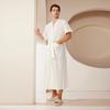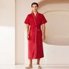 Szlafrok męski na wiosnę i lato, długi, miękki, frotte, szlafrok dla par, krótkie rękawy, kieszenie, dekolt w serek, sznurowany, bielizna nocna
