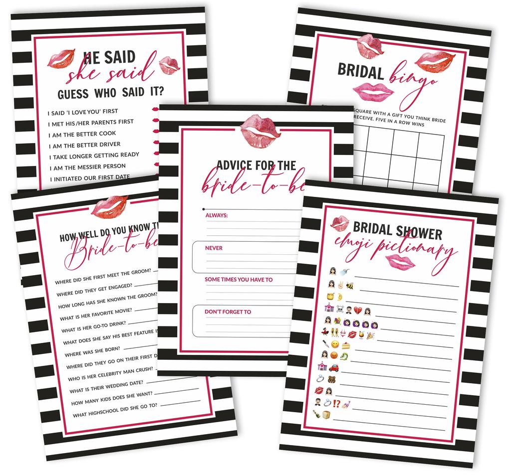 Inkdotpot Striped Theme Bridal Shower Games Set of 5 (Activities for 50 Guests) Fun Bachelorette Party Games Set Bundle