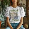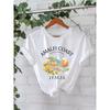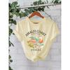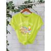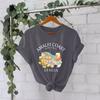 Bawełniana koszulka letnia z krótkim rękawem, okrągłym dekoltem, z nadrukiem, damska
