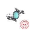 S925 Tajskie Srebrne Pierścienie dla Mężczyzn i Kobiet Eleganckie Retro Design Szeroki Owalny Turkusowy Pierścionek Z Piórem Biżuteria Ślubna